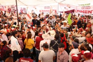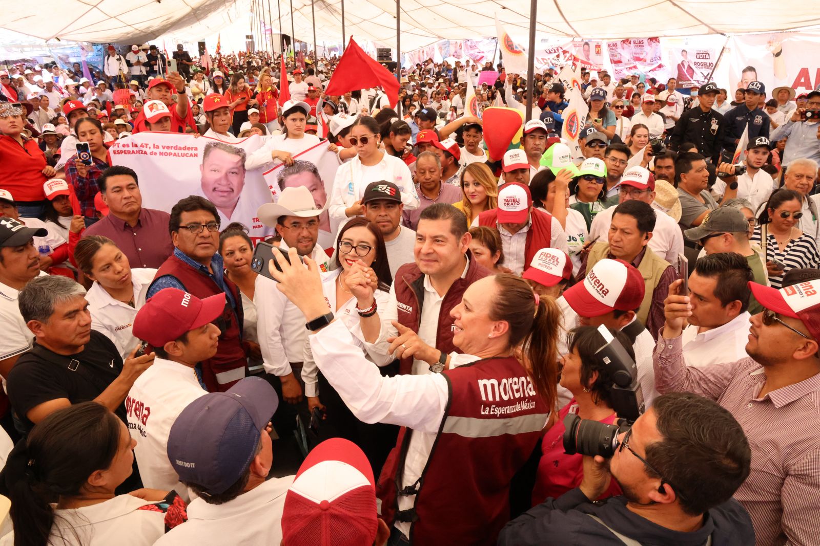 El candidato Alejandro Armenta, dijo que “vamos a regresar los impuestos sin lesionar a los municipios, con la obra comunitaria, para que las más de 6 mil comunidades de municipios de la región como Soltepec, Grajales, Zacatepec, Chiapas, Libres, Oriental, el Seco, y comunidades como: Ixtiyucan, el Rincón Citlaltépetl, Heredira, Santa Cruz del Bosque, Ozumba, Emilio Portes Gil, La Estación Rinconada, trabajen en obras que propongan con faena, y yo haré 312, una cada semana durante todo mi sexenio, con tequio y mayordomÃa”.