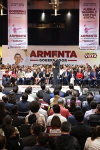 El candidato Alejandro Armenta presentó con una visión transformadora, los 6 ejes del Proyecto Estatal 2024-2030, los 10 planes, 100 acciones que se ejecutarán para el desarrollo de Puebla y el bienestar del Pueblo de Puebla.