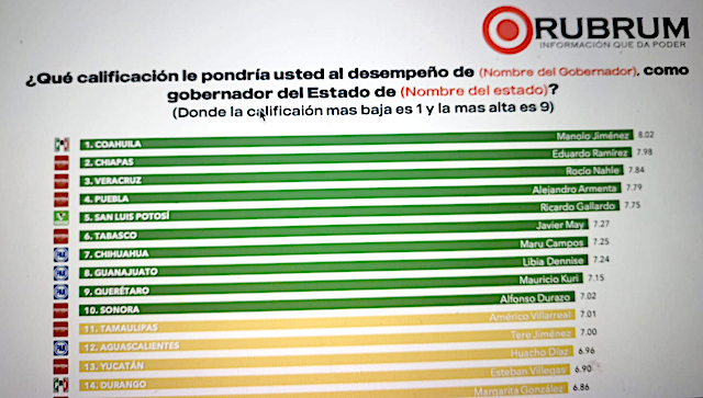 Alejandro Armenta Mier, es el cuarto lugar mejor evaluado por los mexicanos en la última encuesta realizada y difundida por la empresa RUBRUM, ésta semana, con él 7.79 por ciento