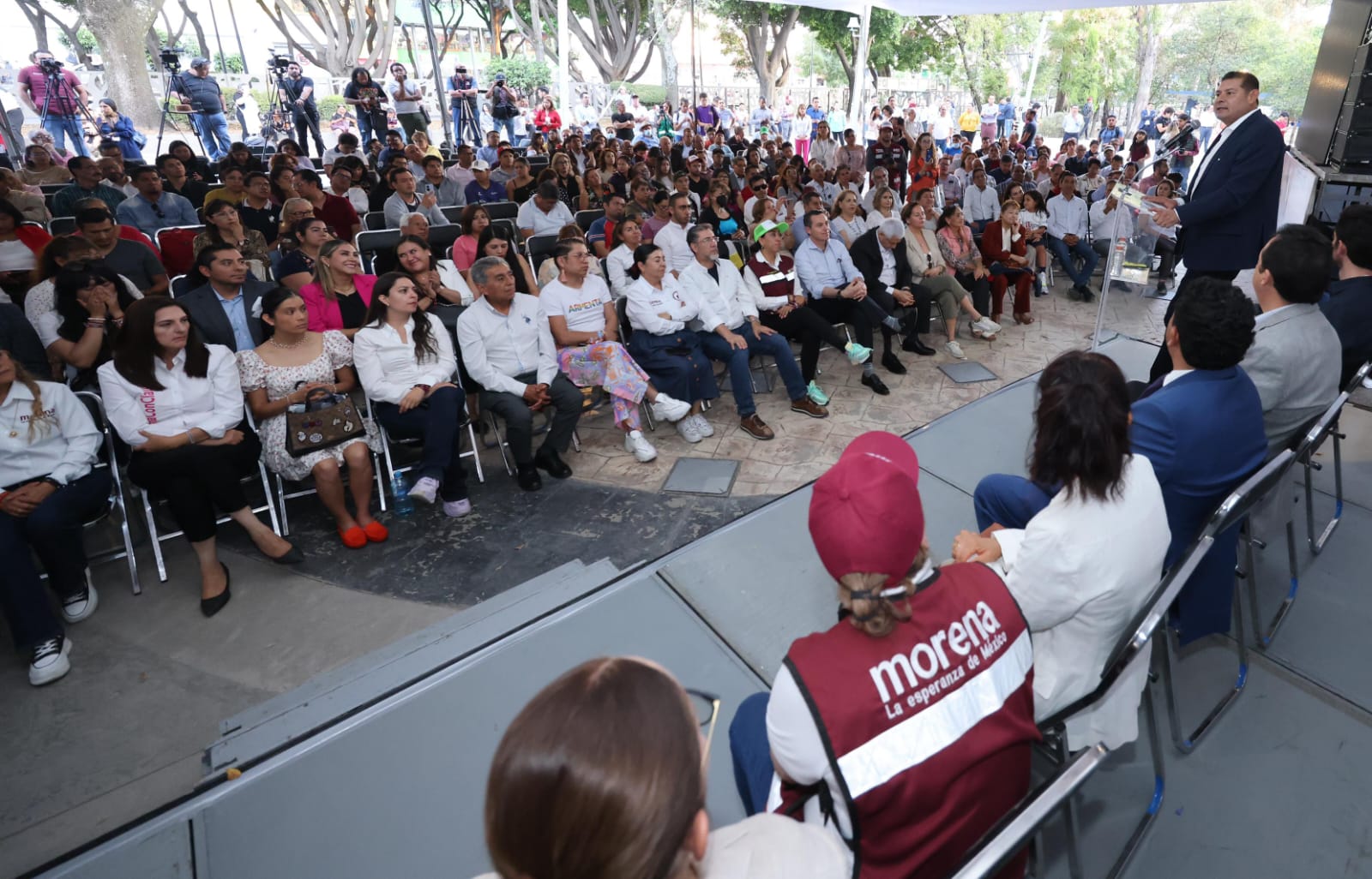 En un lugar de gran significado para el buen gobierno, en el Parque Benito Juárez, Armenta definió las tres fases para construir el segundo piso de la Cuarta Transformación en Puebla, consolidar un gobierno eficiente y humanista en el uso de los recursos públicos, la honestidad y la eliminación de la corrupción. En el Foro participaron especialistas en administración y gobierno, contadores públicos, abogados, y del ramo de las panificadoras Juan Pérez, líder de los panaderos en el estado.
