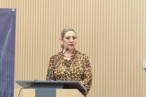 Durante la conferencia magistral la ponente destacó los principales cambios en la legislación respecto a los pueblos y comunidades indígenas, sus facultades y cómo era su sistema político.