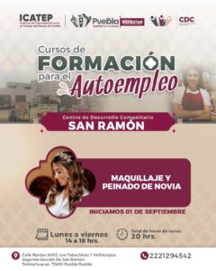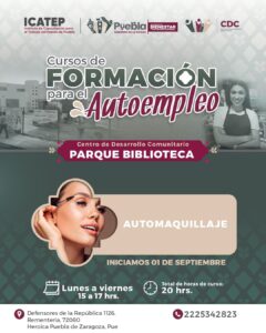 El Gobierno de la Ciudad, en coordinación con el Instituto de Capacitación para el Trabajo del Estado de Puebla (ICATEP), invita a la ciudadanía a inscribirse en los cursos gratuitos de capacitación para el autoempleo que se realizarán a partir del mes de septiembre en distintos Centros de Desarrollo Comunitario (CDC) y en el Parque Biblioteca. Esta iniciativa responde al compromiso del presidente municipal, Pepe Chedraui Budib, de fomentar el desarrollo económico y poner orden en la capital.