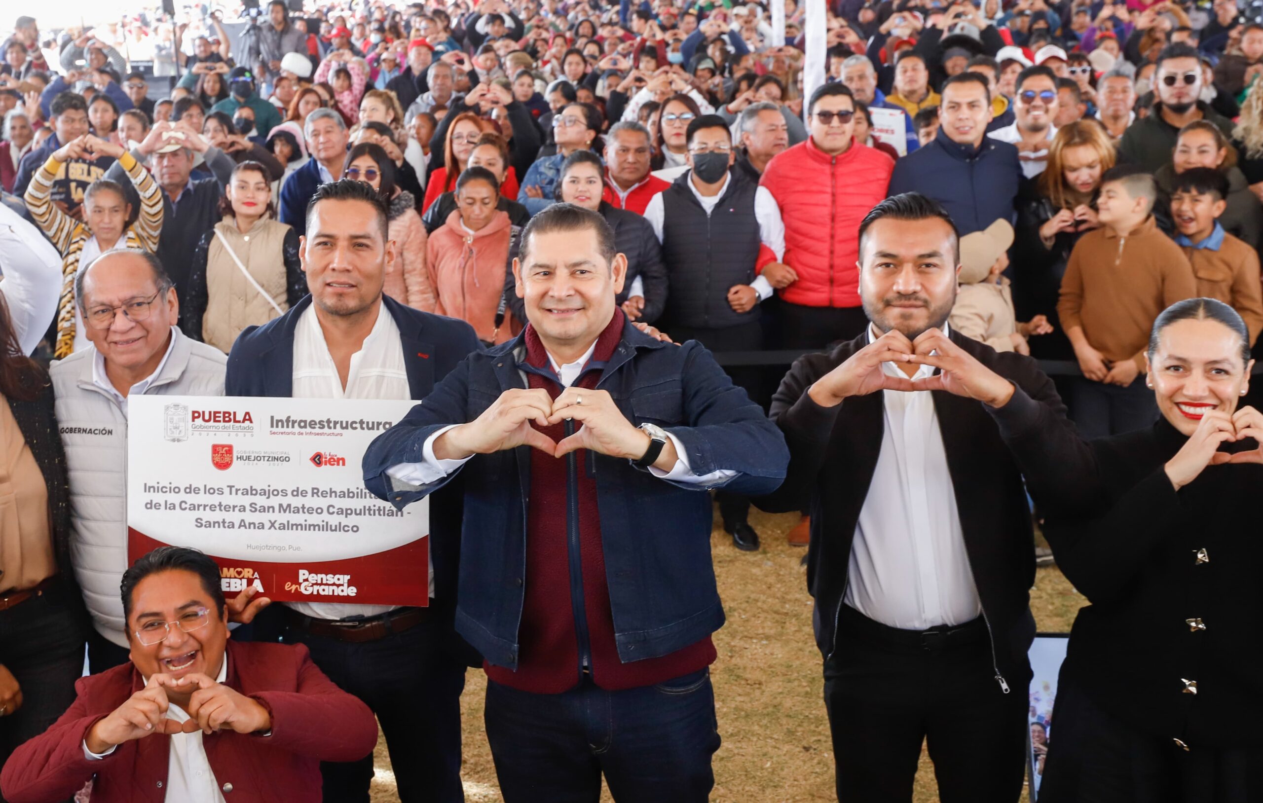 El gobernador dio el banderazo de arranque de obras de rehabilitación del Libramiento de Huejotzingo, de la carretera federal México-Puebla, de la vialidad de acceso al Aeropuerto Hermanos Serdán, del boulevard Río Xochiac y de la carretera San Mateo Capultitlán-Santa Ana Xalmimilulco, y entregó mil 400 calentadores solares para familias de esta demarcación.