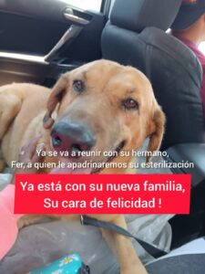 Ambos perros fueron apadrinados por la Asociación Civil TAC, la cual proporcionó alimento y apoyo a la adoptante, además de realizar la esterilización de uno de los ejemplares. Actualmente, los dos se encuentran en su nuevo hogar bajo condiciones adecuadas de cuidado.