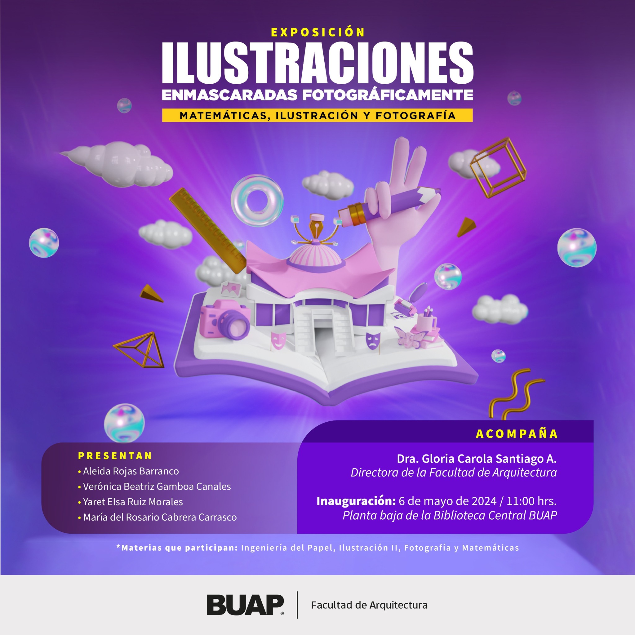 Este 6 de Mayo se llevará a cabo la inauguración en punto de las 11:00 am, desde la Planta Baja de la Biblioteca Central Universitaria, preside la Dir. de la Facultad de Arquitectura de la BUAP, Dra. Gloria Carola Santiago.