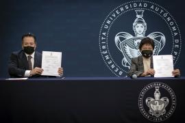 En su intervención, Manuel Sandoval Delgado, coordinador General de Desarrollo Sustentable de la BUAP, destacó que la firma de esta carta de intención permitirá una movilidad efectiva de los estudiantes por la ciudad de Puebla y su zona conurbada, a través de 13 rutas y 178 corridas diarias, para atender las áreas de Ciudad Universitaria, Salud y de las preparatorias, principalmente. “En esta gestión se ha puesto interés en los estudiantes y en ofrecerles las mejores y más seguras condiciones, como lo es el transporte universitario”.