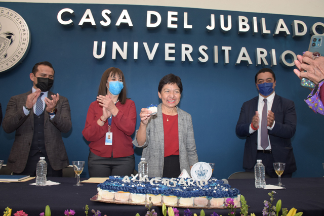 La Rectora María Lilia Cedillo Ramírez festejó el 15 aniversario de la Casa del Jubilado Universitario, donde aseguró: “Este espacio está hecho para que ustedes encuentren la compañía, el asesoramiento, el cuidado de la salud, pero también la parte humana; que vuelvan a estar en contacto con universitarios como ustedes”.