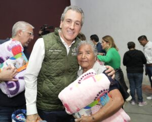 Como parte de la posada navideña, Pepe Chedraui y MariElise Budib entregaron frazadas a las y los adultos mayores para protegerlos de las bajas temperaturas habituales de la temporada.