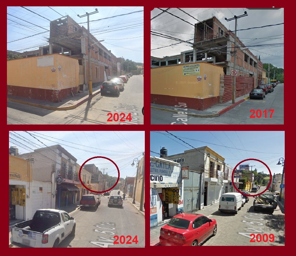La construcción en proceso de lo que será un gran hotel sobre una plataforma prehispánica, fue iniciado en la administración de José Juan Espinosa Torres, cuando su propietaria fungía como servidor público en San Pedro Cholula y ahora es la presidenta municipal de Zacatlán, Puebla.