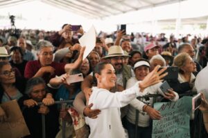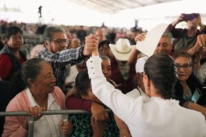’’Quiero hoy anunciarles algo que he venido platicando en estas giras con el Presidente, que tenía yo la idea desde hace tiempo, — y además también ha sido una idea del Presidente Andrés Manuel López Obrador —, es un programa especial para todas las adultas y adultos mayores, no solamente es la pensión, sino que además ahora vamos a llevar a médicos, médicas, enfermeros, enfermeras a la casa de cada uno de ustedes’’, agregó al recibir el respaldo de las y los queretanos presentes al grito de ‘’Es un honor estar con Claudia hoy’’.