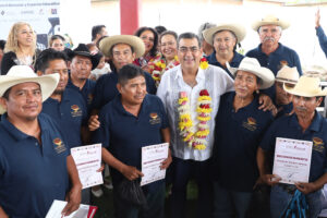 En esta gira de trabajo, Sergio Salomón también entregó apoyos para el bienestar de las familias poblanas, cuatro certificados de la construcción de espacios educativos e inauguró el techado en la Escuela Primaria Miguel Hidalgo.