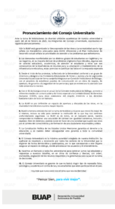 Comparte la BUAP pronunciamiento del Consejo Universitario tras sesión extraordinaria