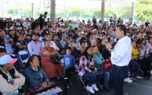 El secretario de Gobernación, Samuel Aguilar Pala, destacó el valor del Programa de Obra Comunitaria, un modelo de administración directa con enfoque de género, donde comités vecinales, liderados por tesoreras mujeres que administran los recursos de manera eficiente y transparente. “Confiamos en ustedes, porque sabemos que una madre o una esposa cuida el recurso como cuida su hogar. Hoy dejamos en sus manos el bienestar de sus comunidades”, aseguró Samuel Aguilar.