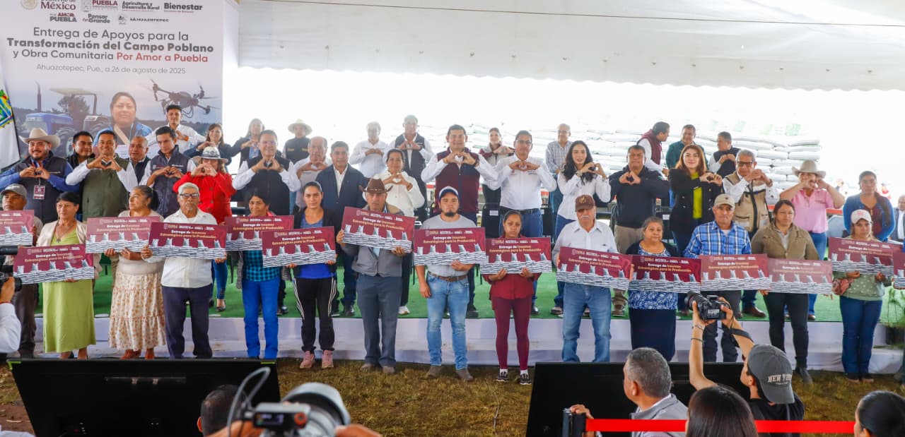 El gobernador Alejandro Armenta encabezó la entrega de acciones del programa de obra comunitaria “Por Amor a Puebla”, consolidado como una herramienta clave para reconstruir el tejido social, fomentar la paz y generar bienestar en las comunidades. En esta jornada se entregaron de manera directa y sin intermediarios, insumos, maquinaria y herramienta para mil 150 productores, con una inversión superior a 14 millones de pesos; así como más de 16 millones de pesos para 54 proyectos de obra comunitaria, a comités ciudadanos encabezados principalmente por mujeres.