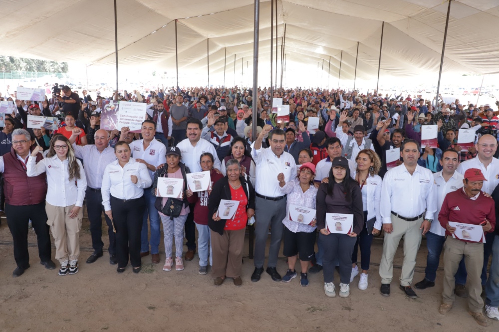 En esta gira de trabajo, en la que el mandatario reiteró el llamado a la sociedad a hacer comunidad, también otorgó una constancia de la construcción del sistema de agua potable de la localidad de Guadalupe Victoria, por 26.5 millones de pesos; y distribuyó 29 mil 050 acciones para el bienestar de las familias poblanas (producto lácteo y calentadores solares) por 2.3 millones de pesos.
