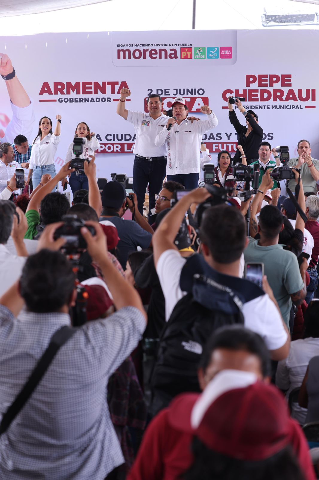 Acompañado de la presidenta de Morena en Puebla Olga Lucía Romero Garci-Crespo; la candidata a la presidencia municipal de San Pedro Cholula, Tonatzin Fernández; el candidato a la presidencia municipal de San Andrés Cholula, Víctor Galeazzi; y los candidatos a diputados federales y locales, y el sub coordinador de campaña Abrahám Quiróz y como invitada la Senadora Nuvia Mayorga, el candidato Alejandro Armenta, reafirmó las acciones que integran su proyecto de estado basado en 32 años experiencia y los sentimientos del pueblo, en el Plan Estatal 2024-2030.
