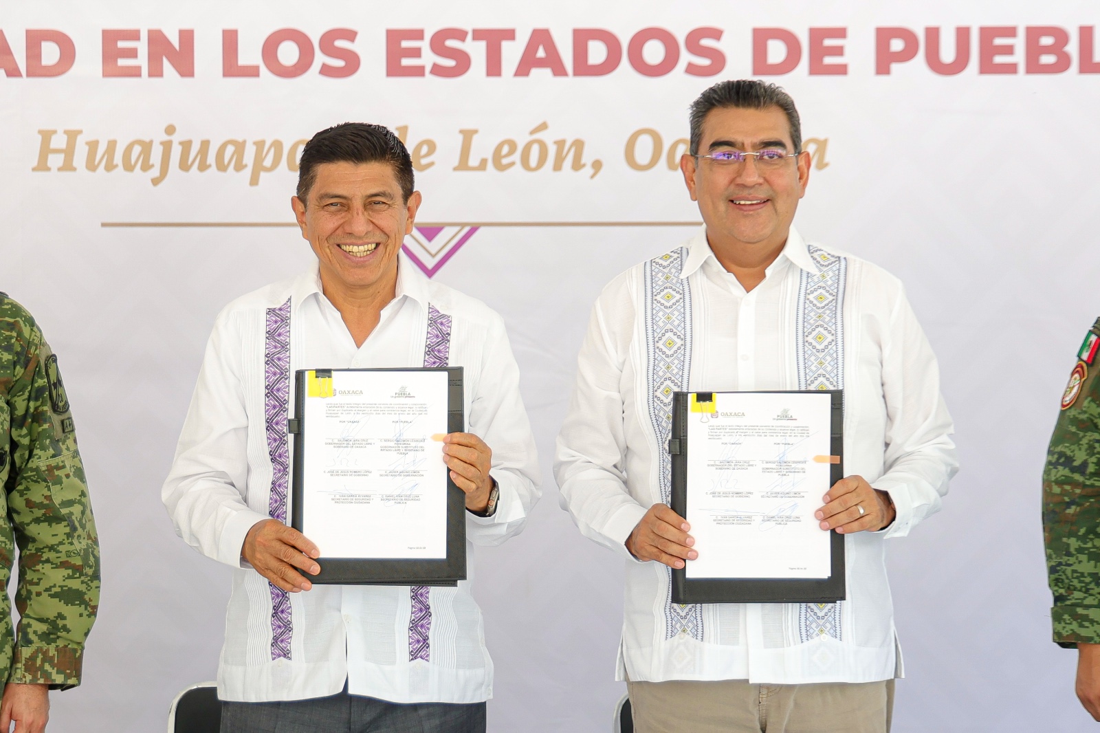 Para garantizar la seguridad, paz y bienestar en la zona limítrofe, el gobernador Sergio Salomón y su homólogo de Oaxaca, Salomón Jara Cruz firmaron un convenio de coordinación para impulsar acciones conjuntas en la materia.