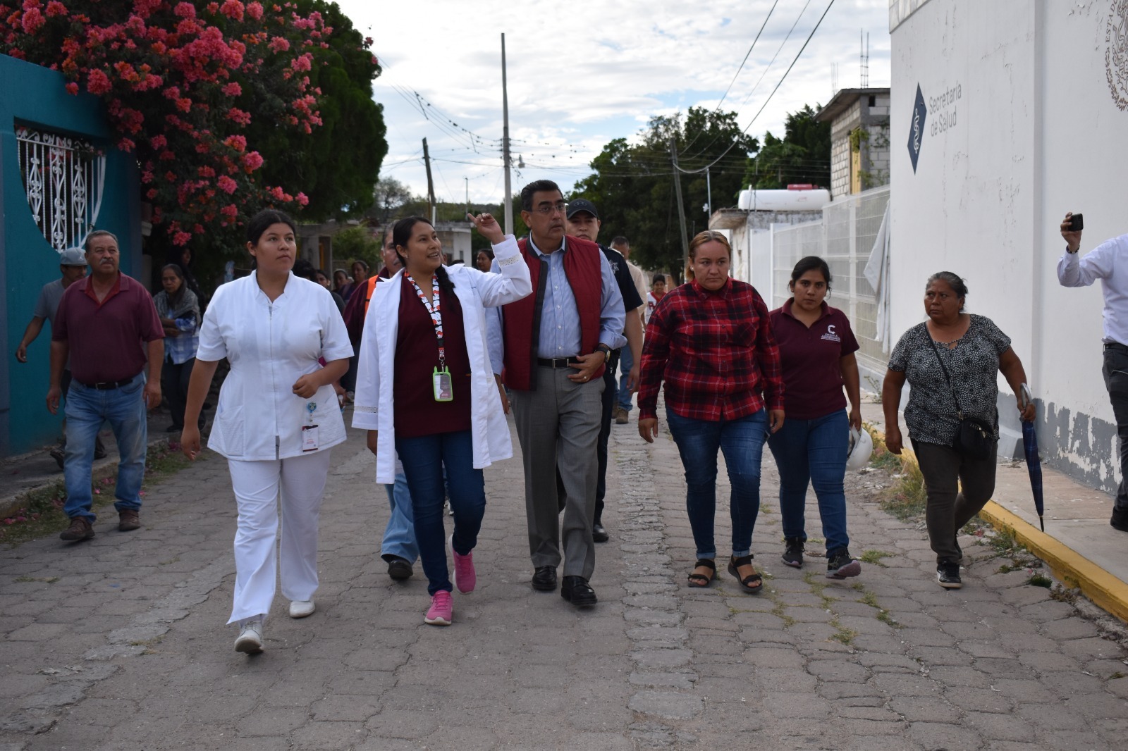 El gobernador Sergio Salomón realizó un recorrido de supervisión por este municipio, que fue el epicentro del sismo registrado a las 14:03 horas de este jueves 07 de diciembre, constatando que no hay personas lesionadas, solamente daños materiales mínimos o menores.