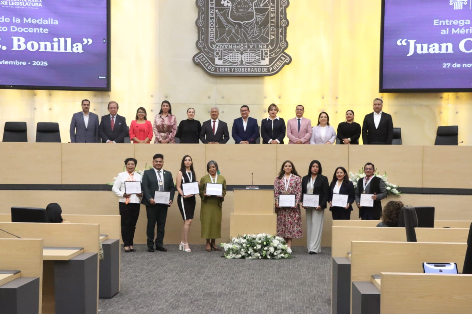 El Congreso del Estado, a través de la Comisión de Educación de la LXII Legislatura, entregó la Medalla al Mérito Docente Juan C. Bonilla a ocho maestras y maestros, con la finalidad de reconocer su trayectoria, calidad educativa y el impacto social en sus comunidades.
