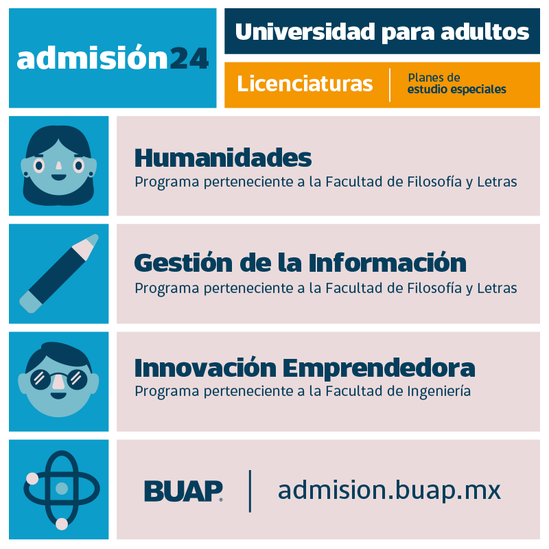 La Benemérita Universidad Autónoma de Puebla anuncia el proceso de inscripción a sus programas para adultos, que estará abierto del 11 al 30 de marzo y que representa una oportunidad sin igual de continuar con la formación profesional.