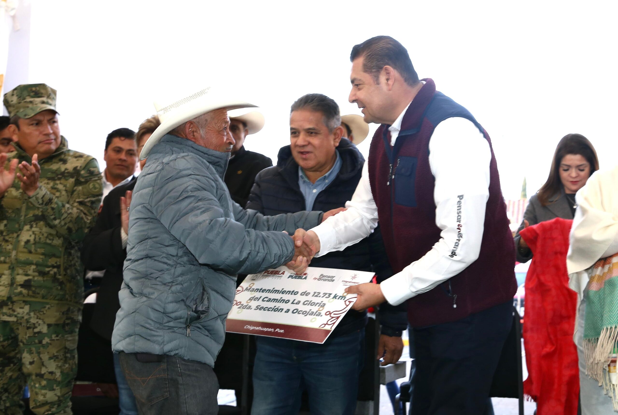 Alejandro Armenta destacó que, con la intención de conectar a la Sierra Norte con la Nororiental, en los próximos meses iniciará la intervención de la carretera Interserrana para el trasiego de mercancías y productos, “porque conectar a Puebla se traduce en desarrollo para todas y todos los poblanos”.