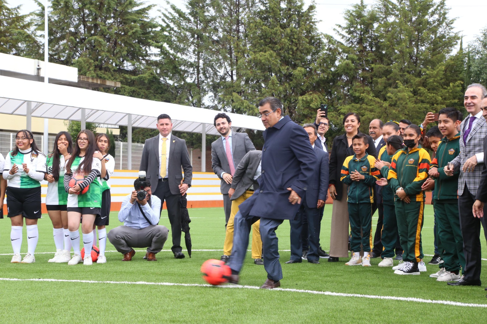 La rehabilitación de la cancha deportiva tuvo una inversión de 7.8 millones de pesos y los trabajos consistieron en instalación de la red eléctrica con reflectores, cerca perimetral, cancha de fútbol soccer, techados exteriores e instalaciones pluviales, expuso Mario Alberto Cruz González, director general del Comité Administrador Poblano para la Construcción de Espacios Educativos (CAPCEE).