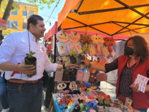 Por más de 2 horas, el senador poblano platicó con los comerciantes y artesanos en esta zona de la ciudad capital.