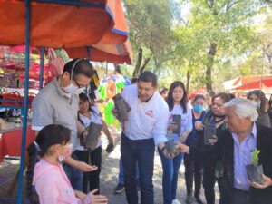 Un millar de árboles frutales de manzano y limón fueron entregados a comerciantes y artesanos del Jardín de Analco, quienes expresaron su reconocimiento a esta labor de concientización del legislador poblano, señalando que es un trabajo sin distingos políticos ya que el planeta no tiene colores partidistas.