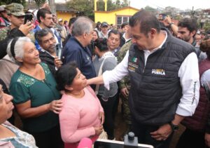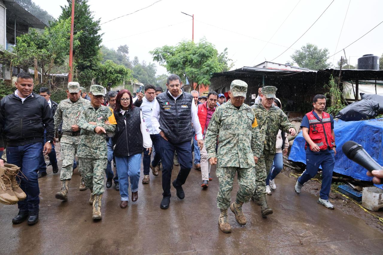 HUAUCHINANGO, Puebla.- El Gobernador de Puebla, Alejandro Armenta y la coordinadora general de Asuntos Intergubernamentales y Participación Social del Gobierno de México, Leticia Ramírez Amaya, acompañados por el Comandante de la VI Región Militar, Héctor Ávila Alcocer; el General Comandante interino de la XXV Zona Militar, Francisco Antonio Enríquez Rojas, el coordinador general de Protección Civil y Gestión de Riesgo de Desastres, Coronel Bernabé López Santos, así como por personal de la Secretaría de Marina, recorrieron las colonias Nuevo Monterrey y Chapultepec, para supervisar los avances en la limpieza de escombros y lodo que afectó la zona.