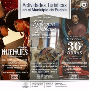 En coordinación con la Secretaría de Cultura del Estado también se presentan diversas exposiciones, como la muestra itinerante “30 Obras” que estará de lunes a domingo en la calle 5 de Mayo, entre las calles 6 y 10 Oriente.
