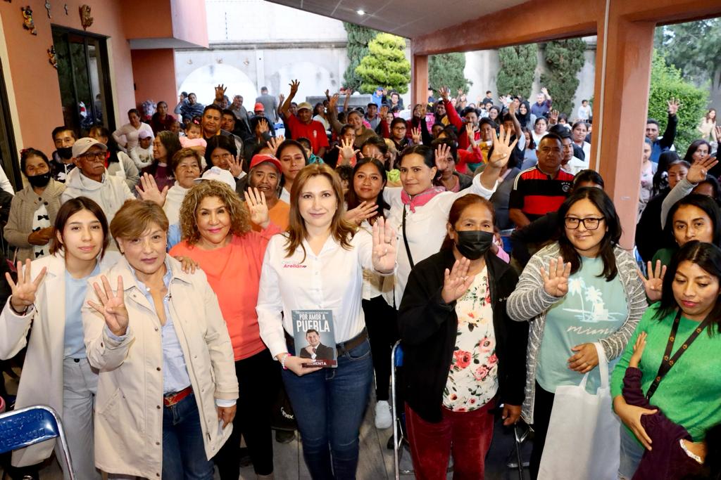 Ceci Arellano encabezó el encuentro sobre valores y familia en la Junta Auxiliar de San Francisco Acatepec, en la región de Cholula, enfocado al bienestar y la salud que promueve el humanismo mexicano que enarbola su esposo Alejandro Armenta.
