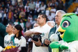 El Estadio Hermanos Serdán se vistió de gala con el lanzamiento de la primera bola a cargo del señor Rafael Armenta, padre del Gobernador de Puebla, Alejandro Armenta, lo que marcó el inicio de la Temporada 2025 como locales de los Pericos de Puebla en la Liga Mexicana de Béisbol (LMB).