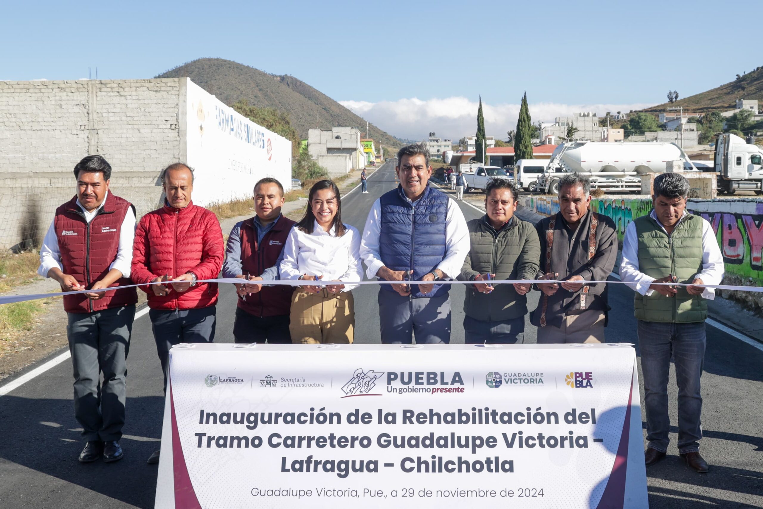 -Además, entregó la reconstrucción del tramo carretero a San Miguel Tecuitlapa en San Nicolás Buenos Aires, así como la rehabilitación de pavimento del tramo carretero a La Fragua-Chilchotla en Guadalupe Victoria