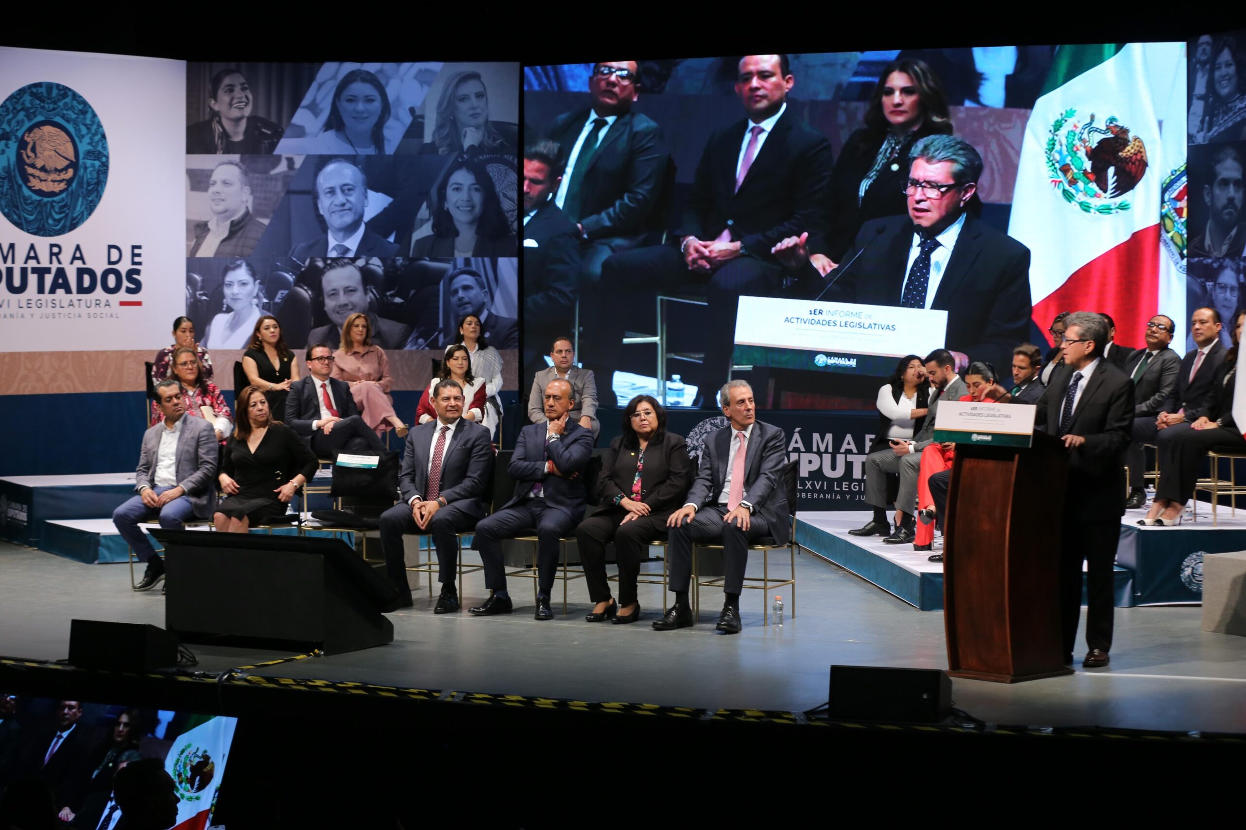 -El gobernador Alejandro Armenta, acompañado por el presidente de la Junta de Coordinación Política de la Cámara de Diputados, Ricardo Monreal, estuvo presente en el Primer Informe de actividades de los legisladores poblanos.