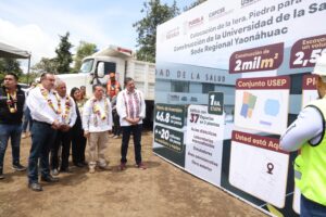 Con el compromiso de impulsar el desarrollo educativo de jóvenes de comunidades indígenas, el gobernador de Puebla, Alejandro Armenta, llevó a cabo la colocación de la primera piedra de la Universidad de la Salud (USEP) en el municipio, cuya edificación tendrá una inversión de 46.8 millones de pesos.