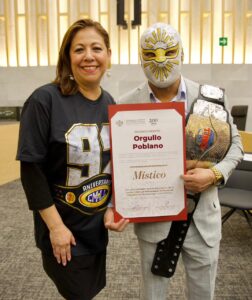Por su invaluable aporte para hacer de la lucha libre un patrimonio cultural de México y un deporte que une a las familias, el Congreso del Estado, a través de la presidenta de la Junta de Gobierno y Coordinación Política, Laura Artemisa García Chávez, y la presidenta de la Comisión de Juventud y Deporte, Ana Lilia Tepole Armenta, entregaron el reconocimiento Orgullo Poblano a integrantes de la lucha libre mexicana.