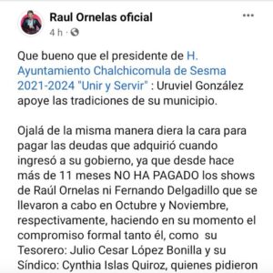 ¿Cómo pueden “colarse” al poder público verdaderos pillos? Pillos del más alto calado. Pues bien, el cantante Raúl Ornelas informó hace unos días que el alcalde de Ciudad Serdán Uruviel González Vieyra le debe el pago por la presentación de un show desde hace un año. Pero Uruviel presume: “Estoy bien con el 01”, es decir, con el gobernador. El Verdugo dice: NO fuera Julio Huerta al que le deba dinero, porque hasta lo destituyen.