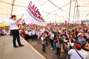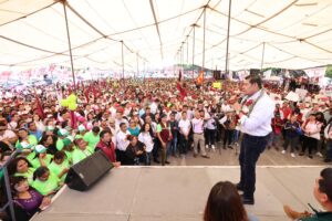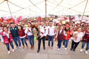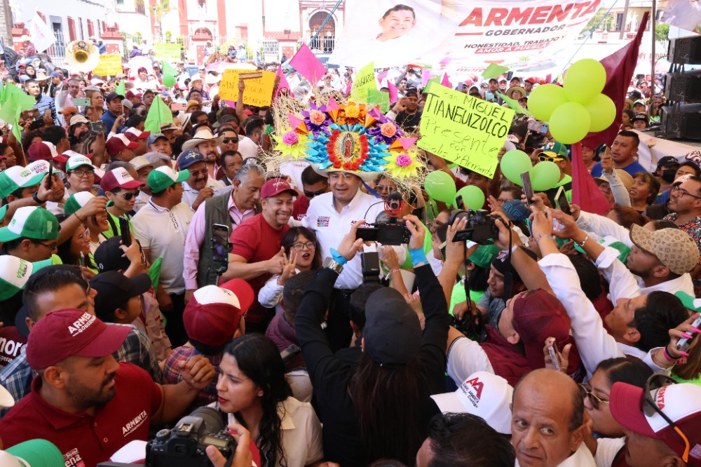 Más de 10 mil personas recibieron en el municipio de Huejotzingo al candidato a la gubernatura del estado de Puebla por la Megacoalición “Sigamos Haciendo Historia” Alejandro Armenta, quien llegó a caballo e hizo compromisos para productores, artesanos y empresarios de la región.