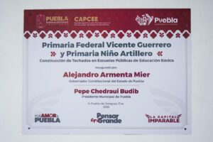 – “Con la entrega de techados escolares con captadores pluviales, colocamos a la niñez poblana en el centro de la política pública”, afirmó Pepe Chedraui