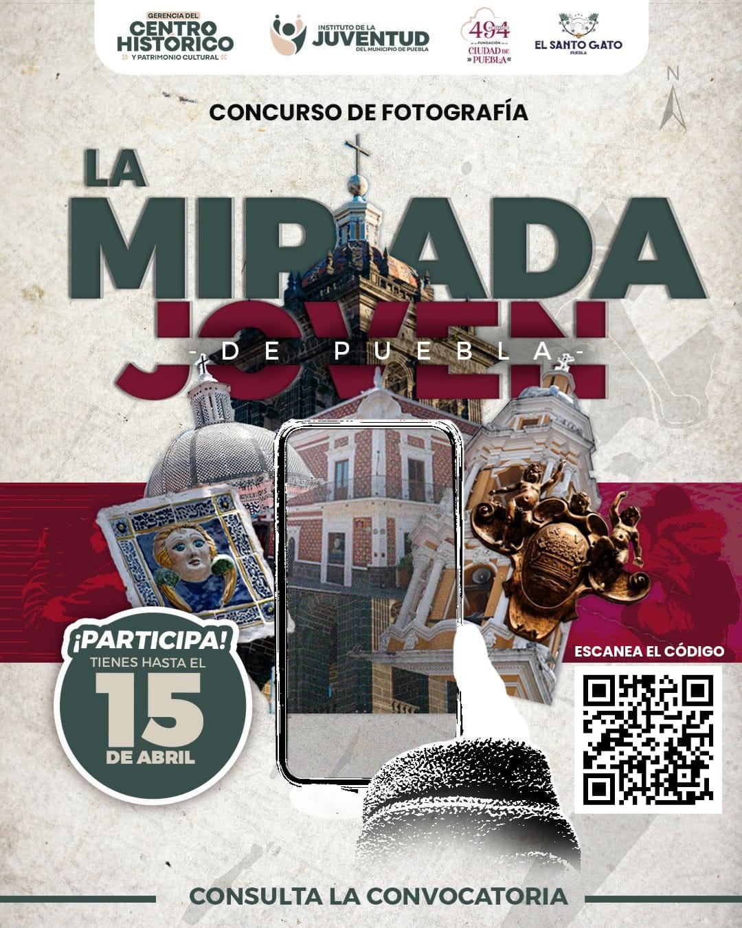 Este certamen invita a las y los jóvenes de entre 15 y 29 años que residan en el municipio de Puebla a capturar la esencia arquitectónica, cultural y urbana del Centro Histórico de la ciudad. Las imágenes deberán estar acompañadas de una breve descripción que explique su significado y contexto.