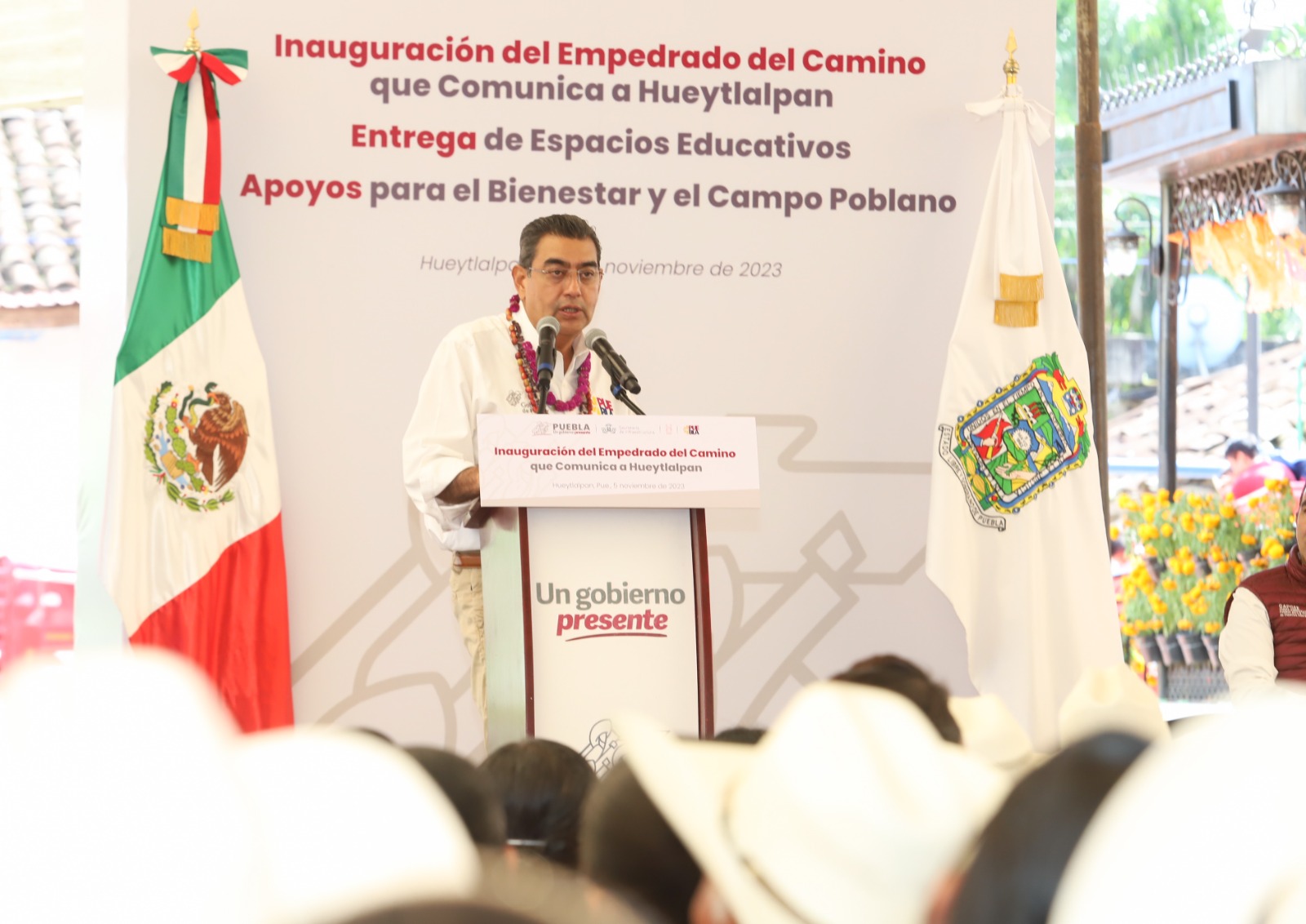 -En Hueytlalpan, el gobernador inauguró obras viales, y entregó apoyos sociales y en favor del campo poblano