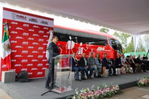-El gobernador de Puebla, Alejandro Armenta asistió a la presentación de las nuevas unidades de la empresa Mobility ADO, con una inversión de 100 mdp.