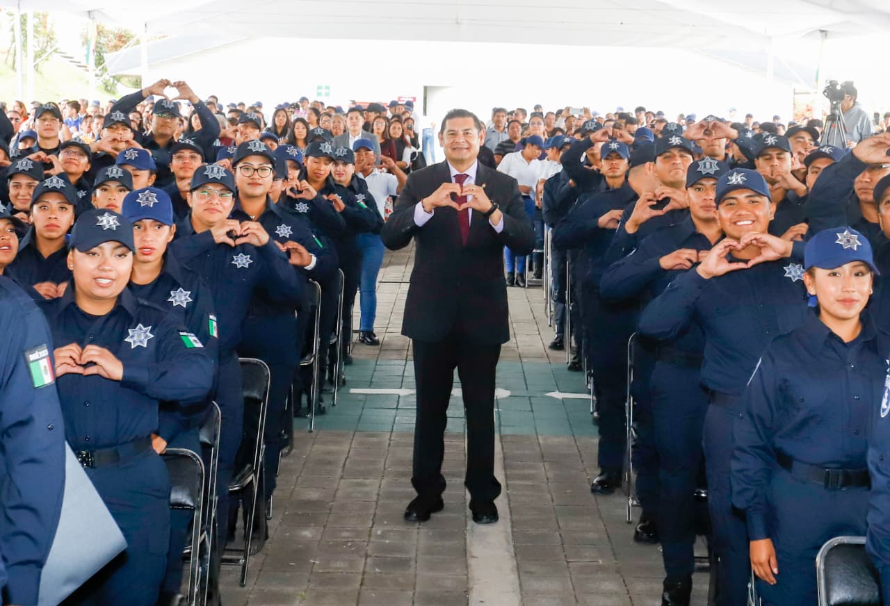 Al asistir a la ceremonia de graduación de 122 Cadetes del Curso de Formación Inicial para Policía Estatal de Proximidad de la Universidad de las Ciencias Policiales y de la Seguridad (UCIPS), el gobernador Alejandro Armenta señaló que para su gobierno cuidar a quienes protegen a las familias es una misión. “Nosotros cuidamos a sus familias para que ustedes protejan a los poblanos, es el compromiso. No están solos”, aseguró el mandatario, al tiempo de reconocer que se formaron con valores que permiten proximidad con la población.