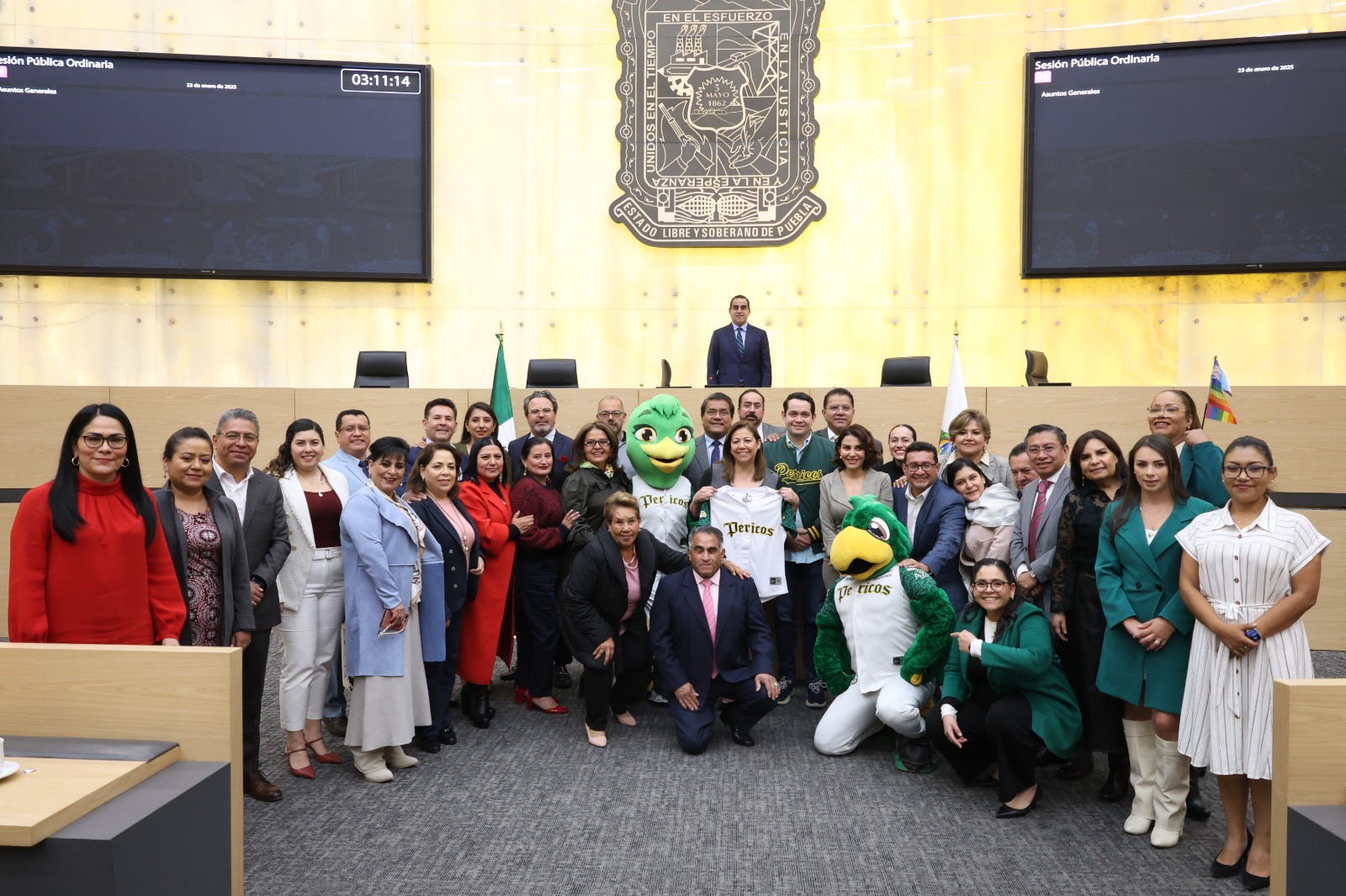 – El equipo de béisbol Pericos de Puebla visitó la sede del Poder Legislativo