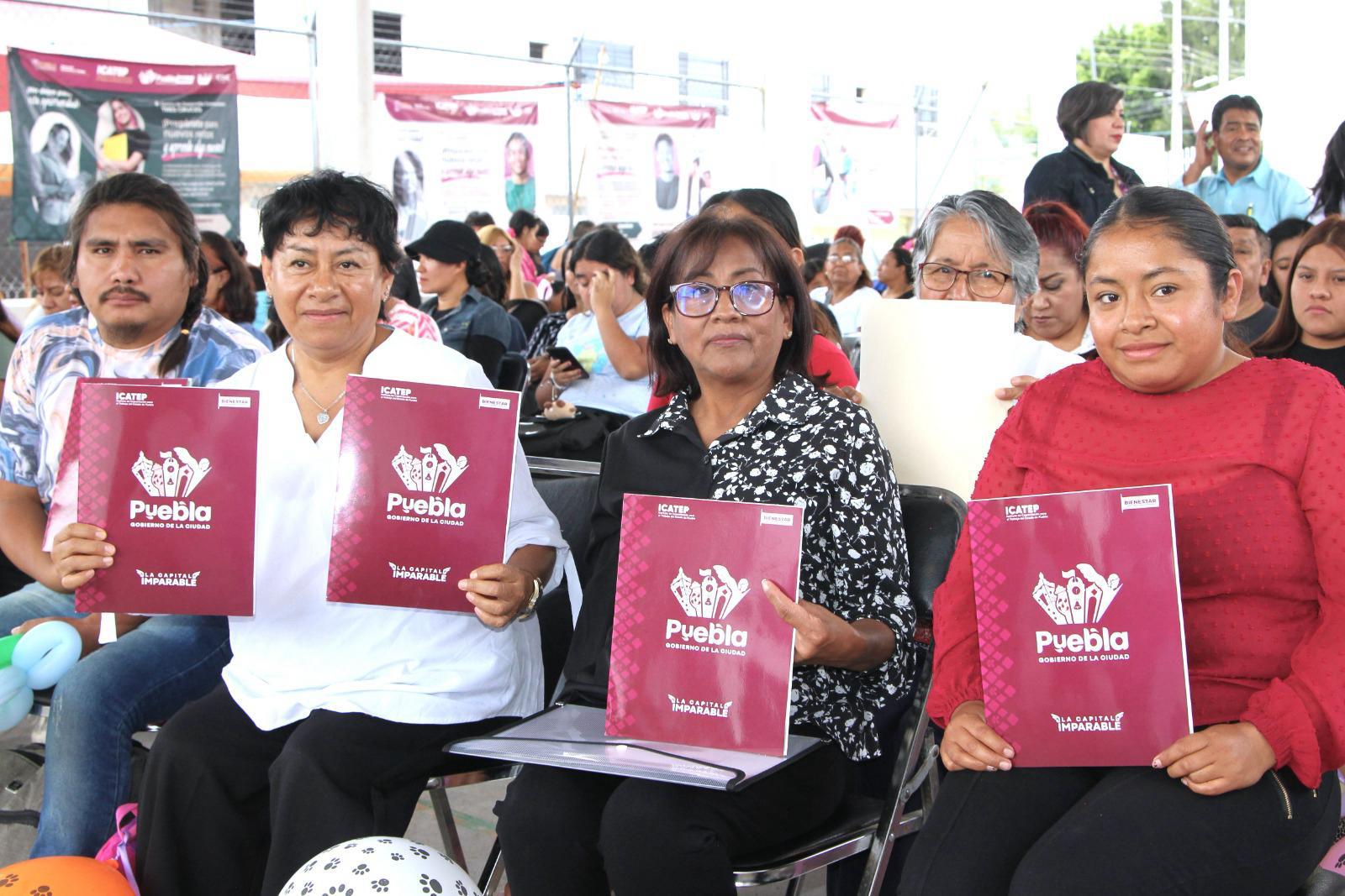 Con el objetivo de fortalecer las habilidades productivas de las y los poblanos, el Gobierno de la Ciudad, encabezado por el presidente municipal Pepe Chedraui Budib, entregó constancias a 350 personas que concluyeron cursos de formación para el autoempleo, impartidos en los siete Centros de Desarrollo Comunitario (CDC) y en el Parque Biblioteca. Las capacitaciones fueron facilitadas por instructores del Instituto de Capacitación para el Trabajo del Estado de Puebla (ICATEP).