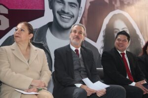 Acompañado por la presidenta de la Junta de Gobierno y Coordinación Política de la LXII Legislatura del Congreso del Estado, Laura Artemisa García Chávez y el secretario de Administración y Tecnologías de la Información, Juan José Tapia González, el alcalde reiteró el apoyo del Gobierno de la Ciudad a las y los jóvenes y personas servidoras públicas para fortalecer su profesionalización.