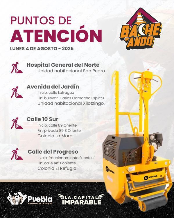 Para atención de reportes, las y los ciudadanos pueden comunicarse al número 072, así como a través de las cuentas oficiales de redes sociales @PueblaAyto e @InfraPue.