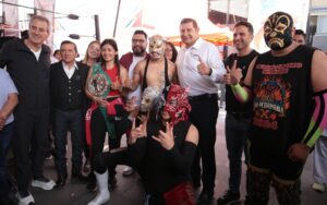 El gobernador Alejandro Armenta recorrió cada módulo, saludó a los vecinos acompañado de la secretaria de Deporte y Juventud, Gabriela “La Bonita” Sánchez y del presidente municipal, José Chedraui. Subió al ring para convivir con deportistas, luchadores y ciudadanos, y reafirmó su compromiso de acercar el gobierno al pueblo, con acciones concretas. Destacó que estas jornadas permiten tramitar escrituras, acceder a talleres educativos, atender temas de seguridad y acercar servicios de salud, belleza y bienestar para todas las edades.