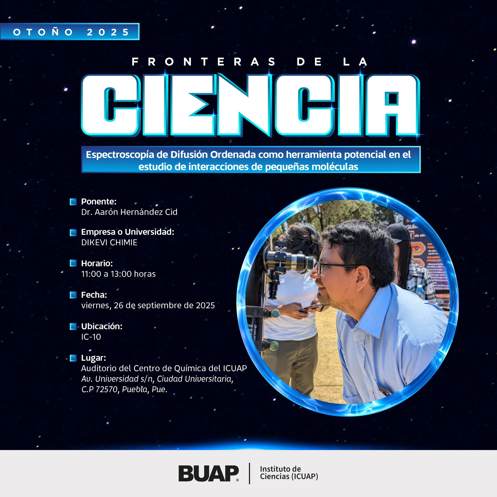 El Instituto de Ciencias de la BUAP invita a la comunidad universitaria a participar en una nueva edición del ciclo de conferencias Fronteras de la Ciencia, espacio dedicado a la divulgación de investigaciones de vanguardia en diversas áreas del conocimiento.