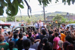 Desde este punto, la mandataria escuchó de primera mano a las familias damnificadas, constató personalmente las condiciones en que se encuentran las viviendas, caminos y carreteras y refrendó el compromiso del Gobierno de México para brindar atención oportuna y apoyo integral a quienes más lo necesitan.